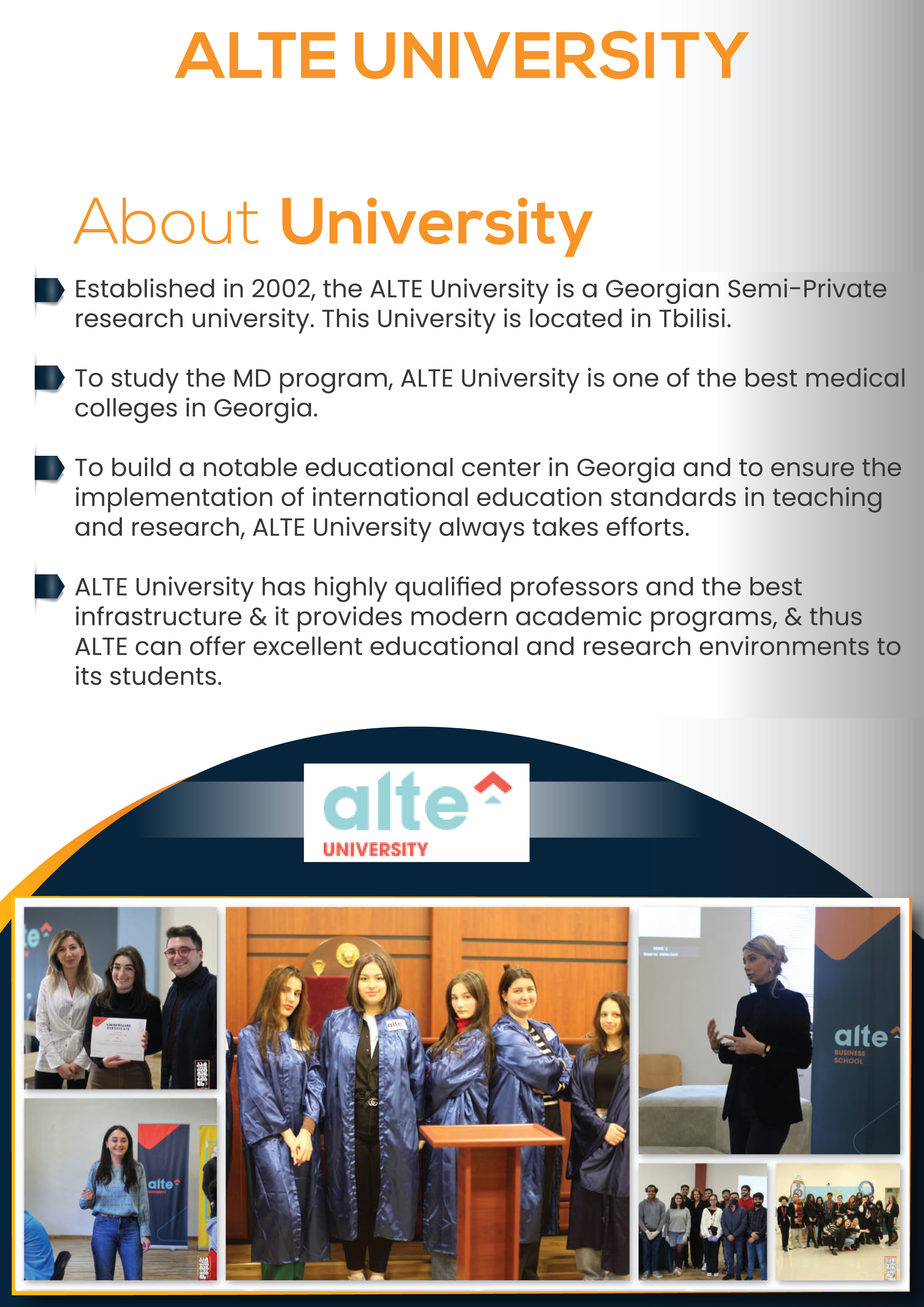 DTo study the MD program, ALTE (TOU) is one of the best medical colleges in Georgia.